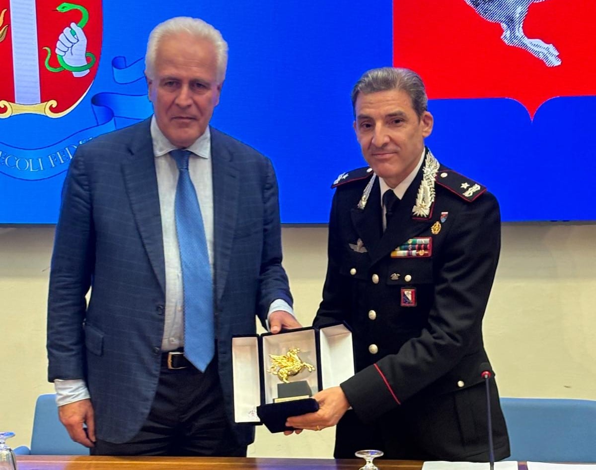 “Il Pegaso della Regione – ha detto il generale di brigata Lorenzo Falferi – che abbiamo ricevuto oggi rappresenta un valore in cui, come carabinieri della Toscana, ci riconosciamo, è un esempio di continuità storica e di un legame forte tra la nostra istituzione, l’Arma dei Carabinieri e la Regione Toscana che ha una sua identità chiara e marcata fin dall’epoca del Granducato e che ha abbracciato l’Arma sin dall’inizio come un elemento di sicurezza, avendo l’Arma teso ad aiutare la popolazione fin dai momenti travagliati delle guerre d’indipendenza, quindi dal 1859, ad oggi. L’Arma, struttura che nel presente sa essere sfidante rispetto alle nuove realtà e difficoltà e che combatte la criminalità attraverso una distribuzione sul territorio, è rimasta fedele a se stessa nel corso del tempo. Un elemento indicativo e identitario è quello di mantenere i presidi sul territorio, per creare quella connessione fra società civile e l’Arma che consente di continuare a dare sicurezza e sostegno alla popolazione toscana. Le sfide di oggi richiedono impegni forti dal punto di vista degli investimenti infrastrutturali ma anche del sostegno alle politiche sociali. Il colloquio e la capacità di dialogo fra l’istituzione regionale e l’Arma in Toscana è sempre stato costante e oggi viene ancor più sottolineato dalla consegna di questo importante riconoscimento per il quale non possiamo che esprimere gratitudine”.