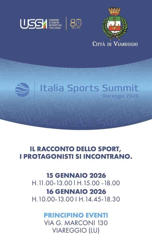 A Viareggio lo sport diventa protagonista. Il 15 e 16 gennaio il Principino Eventi ospita Ussi80 – Italia Sports Summit Viareggio 2026, due giornate di talk e confronti tra giornalisti, campioni e dirigenti del mondo sportivo italiano per celebrare gli 80 anni dell’Ussi – Unione Stampa Sportiva Italiana.
