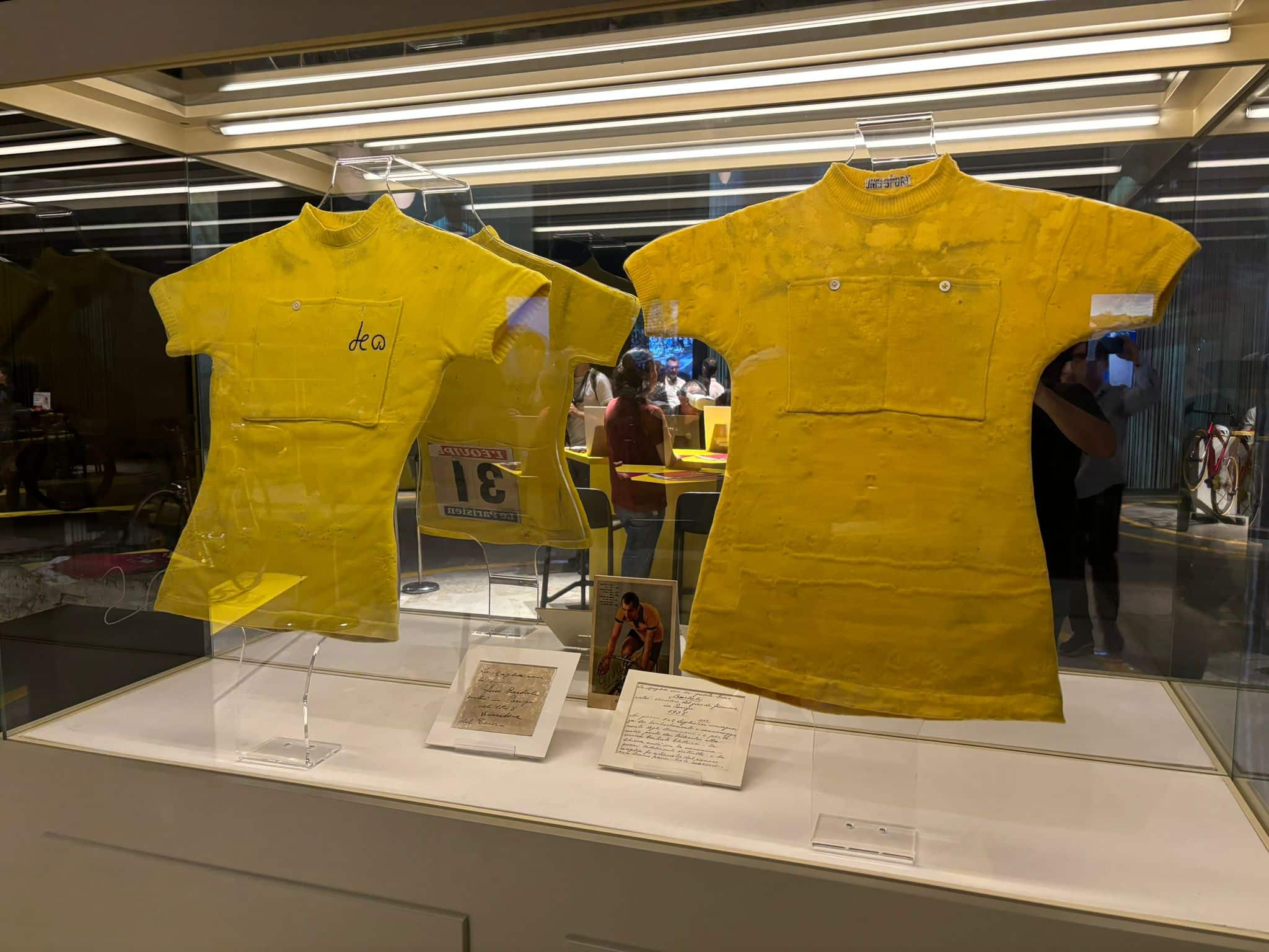 Protagonisti assoluti dello spazio allestito da Opera Laboratori sono i cimeli di Gino Bartali concessi in prestito dall’Arcidiocesi di Siena – Colle di Val d’Elsa – Montalcino. Si tratta di due maglie che il grande ciclista fiorentino ha indossato in un arco temporale di 14 anni: una maglia gialla da lui indossata nel 1938, anno in cui vinse il suo primo Tour de France; un’altra maglia gialla del 1948, anno della sua seconda vittoria nella Grande Boucle, nei giorni dell’attentato a Palmiro Togliatti.