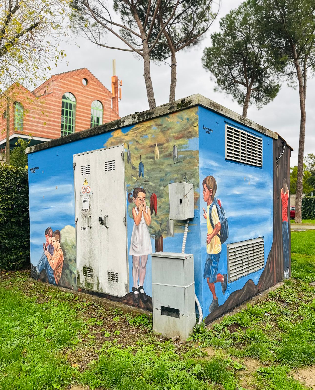 “È il mio primo murale dipinto in Italia su questa tematica – ha spiegato Jupiterfab – e sono molto felice di averlo realizzato in questa città, in collaborazione con un gruppo di persone seriamente e attivamente coinvolte nel migliorare la qualità di vita dei propri cittadini. È stata una sorta di sfida per le (piccole) dimensioni dei personaggi rispetto al mio solito modo di lavorare, ma alla fine è stata sicuramente una grande esperienza.”