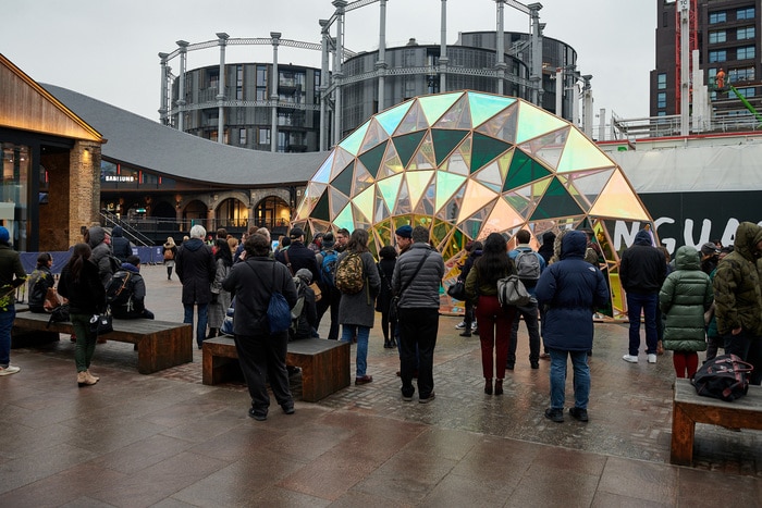 L’opera si trova oggi nel cuore della movimentata zona di King’s Cross, simbolo di uno dei maggiori progetti londinesi di riqualificazione urbana contemporanea segnato dal restauro o dalla realizzazione ex novo di numerosi edifici in stile postindustriale. L’installazione diventa quindi diventa quindi naturale preludio al documentario che l’emittente manderà in onda a primavera sui canali 120 e 400, dal titolo ‘Brunelleschi e le grandi cupole del mondo’, è una produzione Sky Arts Production Hub destinata a raccontare e illustrare la nascita delle soluzioni tecniche utilizzate dal Brunelleschi per innalzare un capo d’opera ingegneristico e costruttivo mai visto prima, ha sottolineato nella capitale del Regno Unito il direttore di Sky Arte, Roberto Pisoni. Ma anche per mostrare come il concetto di cupola si sia reiventato nei secoli e fra le epoche: fino all’espressione di archistar di oggi quali Norman Foster o David Libeskind, protagonisti di interviste ad hoc.