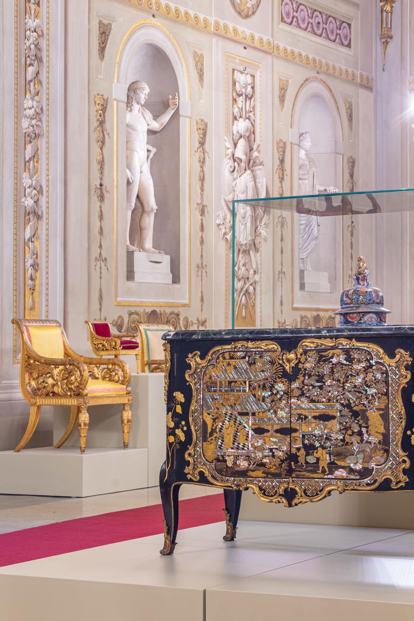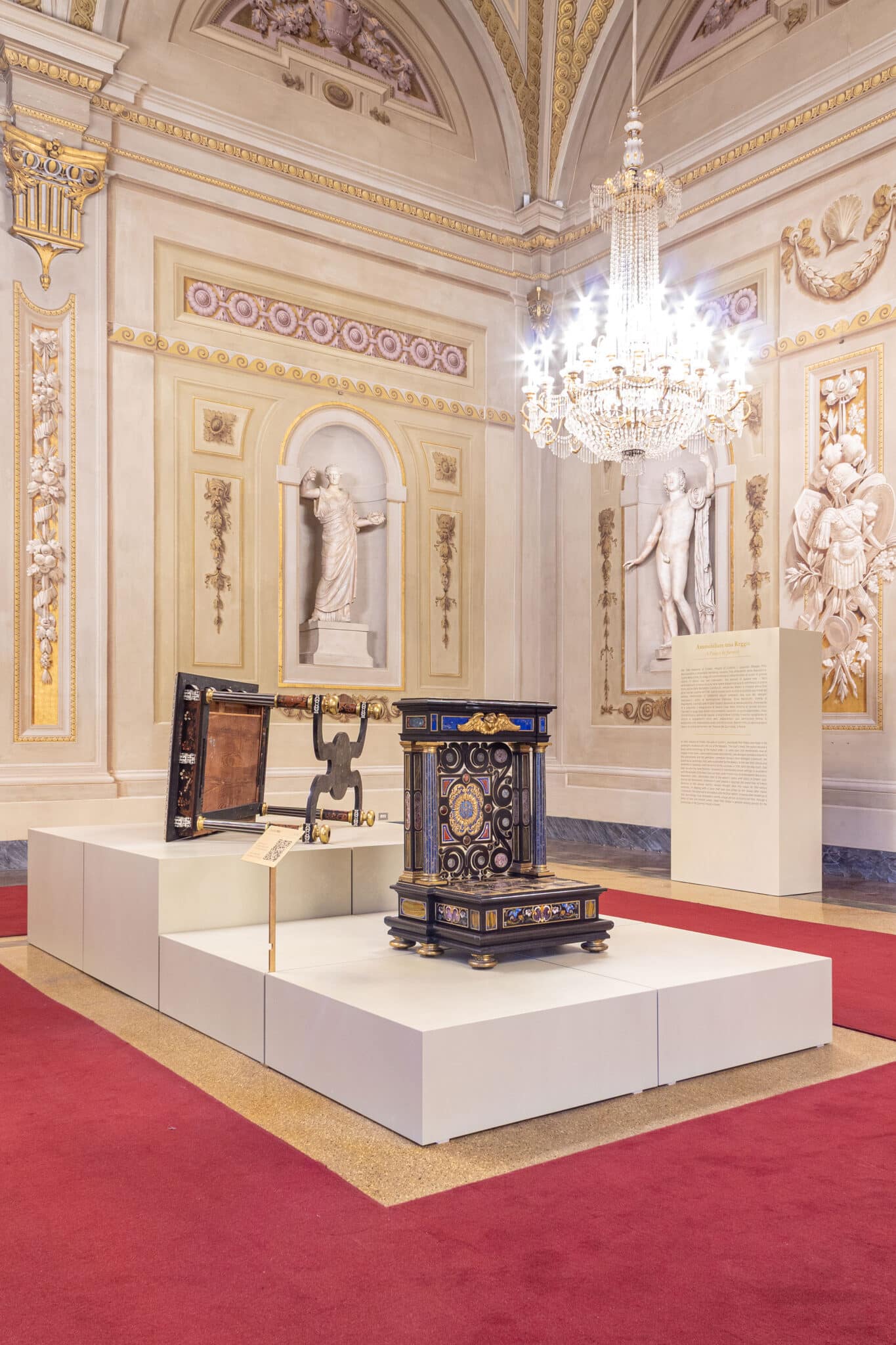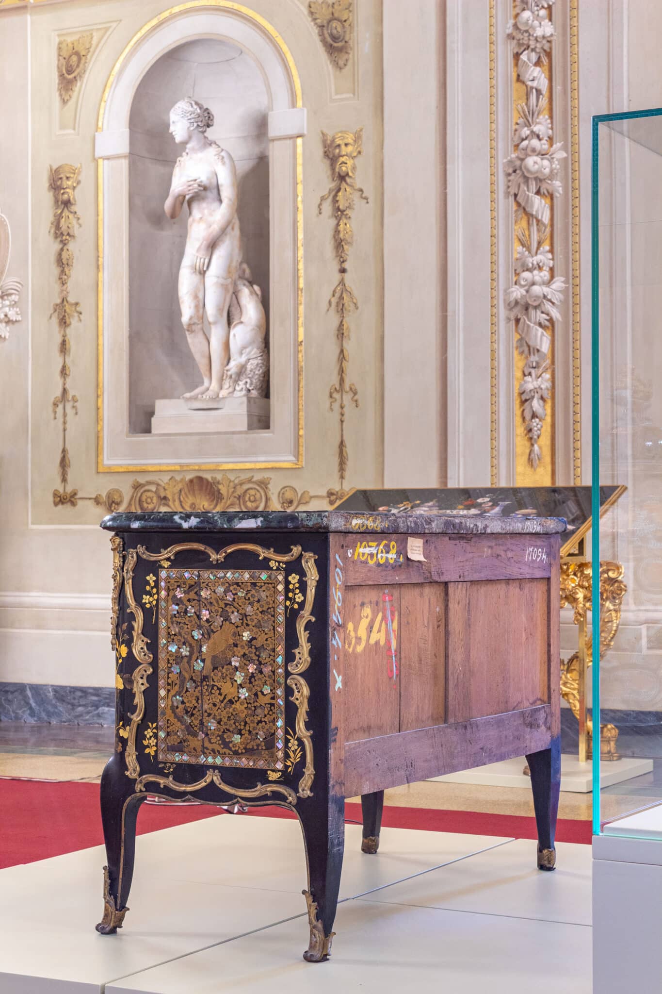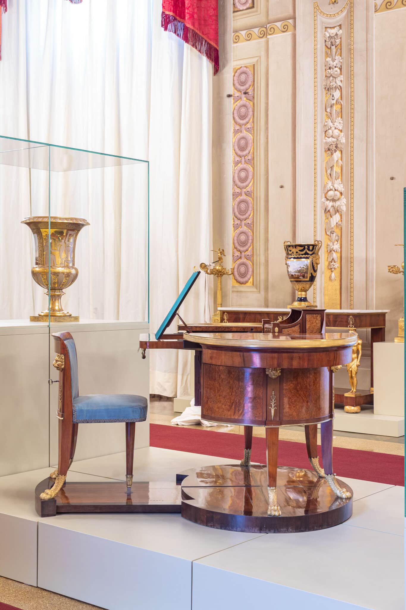 Tra poltrone, vasi Sèvres e cinesi, la scrivania a meccanica chiudibile di Giovanni Socci e oggetti virtuosistici in pietre dure, la mostra racconta la storia culturale del palazzo e dei suoi arredi.