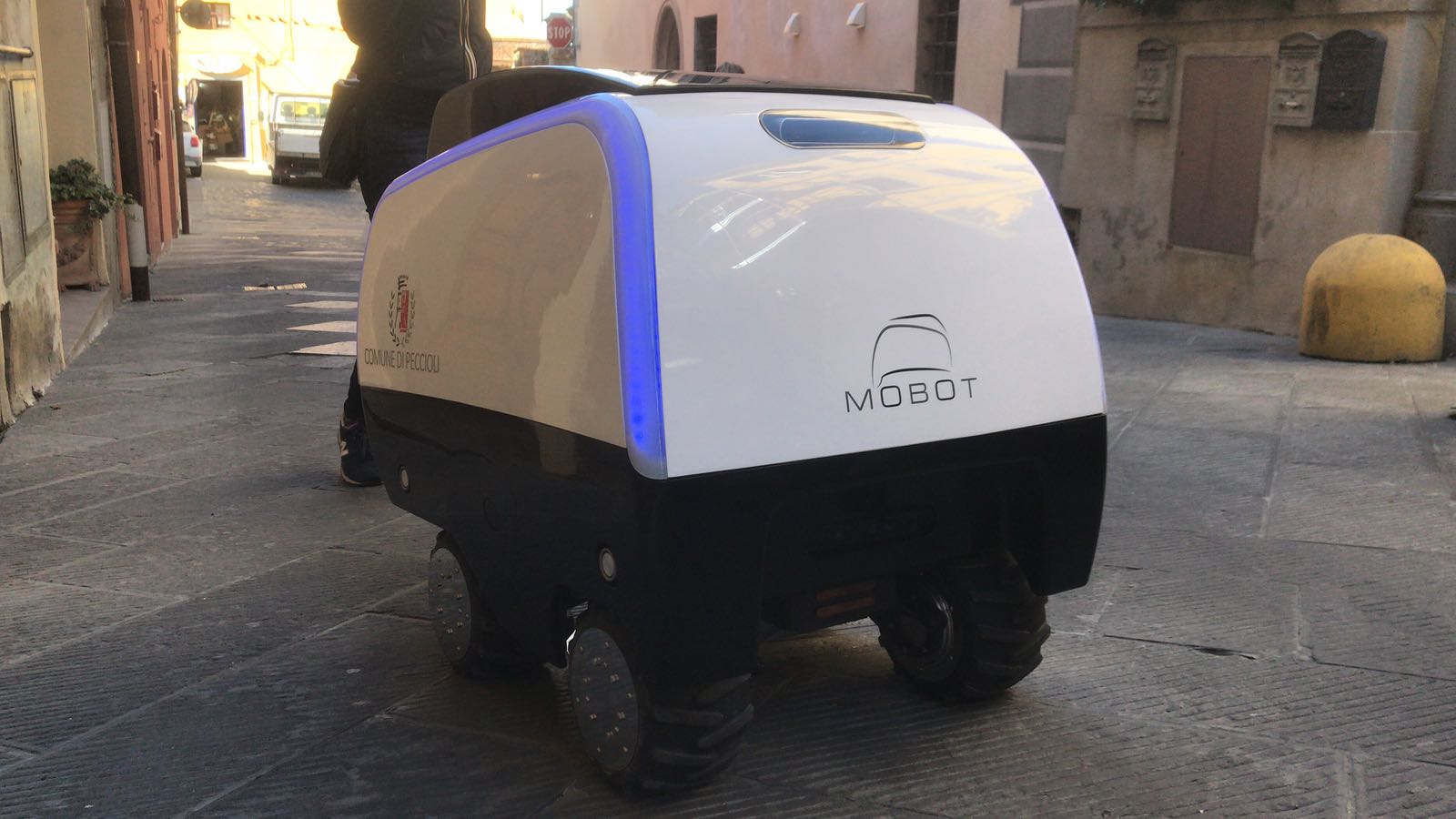 Entra ufficialmente in servizio nel borgo di Peccioli Mobot, il primo carrello robotico per la spesa che si controlla con un’app direttamente dallo smartphone: aiuterà i cittadini a trasportare gli acquisti quotidiani dai negozi alle abitazioni.