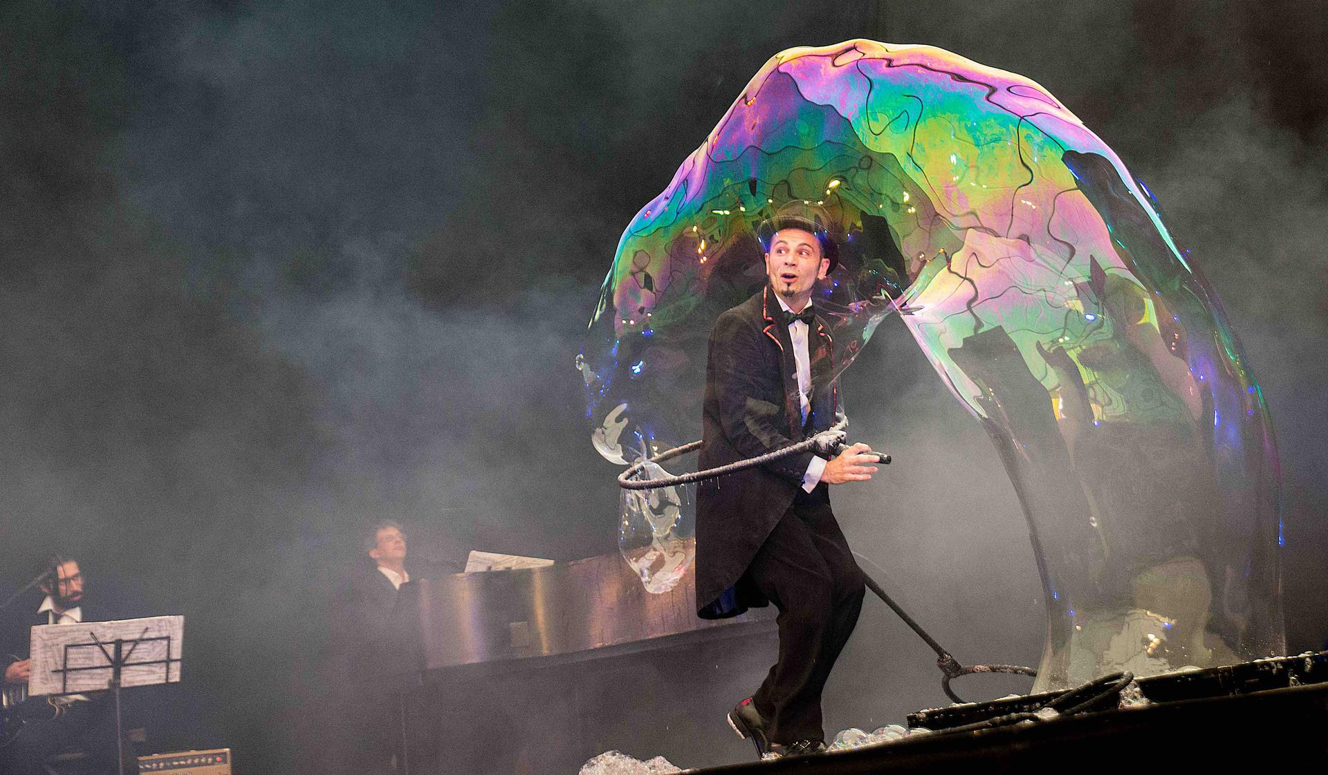 Teatro a Merenda si sposta sabato 5 febbraio alle ore 16.00 al Teatro del Popolo di Colle di Val d’Elsa con il ritorno di uno degli artisti più apprezzati dal nostro pubblico negli ultimi anni. Sul palco Michele Cafaggi con il suo “Concerto in Si Be bolle” una sinfonia di musica dal vivo, clownerie e bolle di sapone all’insegna della leggerezza, dello stupore e del divertimento per gli spettatori di tutte le età.