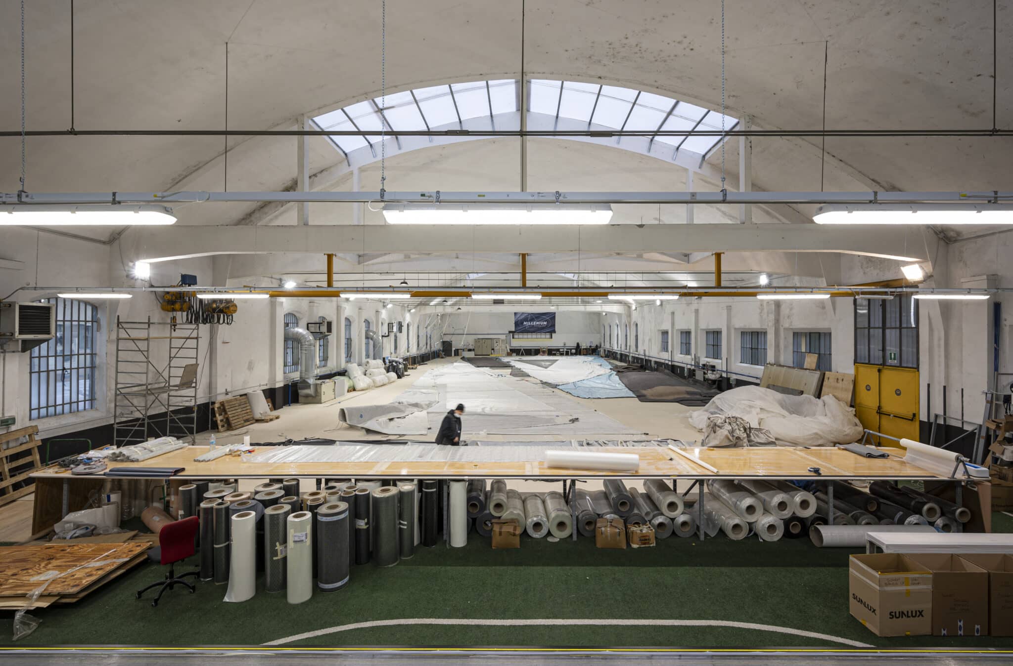 Un grande spazio aperto, ideale per questa produzione unica nel suo genere, che ha portato l’azienda ai vertici internazionali nel campo della produzione delle vele da più di 40 anni. Le fibre di carbonio sono dei tessuti a tutti gli effetti, per quanto speciali e particolarissimi, per la cui lavorazione il know how del territorio pratese, capitale europea del tessile, è fondamentale.