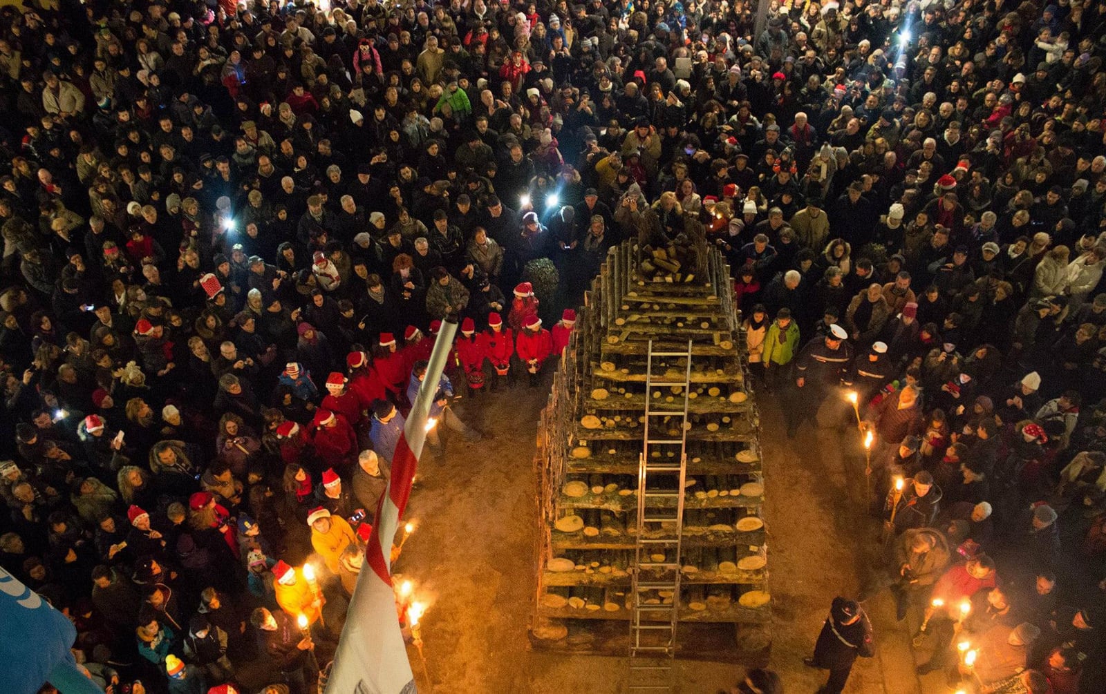 Un appuntamento che viene preparato già dall’autunno quando i “fiaccolai” iniziano a cercare la materia con cui costruire le “fiaccole”, tipiche cataste di legna a forma piramidale alte fino a sette metri che, costruite in ogni terziere del piccolo borgo medioevale, si levano al cielo in attesa della vigilia quando poi verranno incendiate. Una lavorazione impegnativa che coinvolge tutta la comunità impegnandola nella realizzazione di questi monumenti rurali unici. Si intrecciano tronchi sfidando la gravità grazie a tecniche segrete che qui si tramandano di generazione in generazione, per celebrare un rito del fuoco che coinvolge tutti, sposando simbolici significati pagani e religiosi.