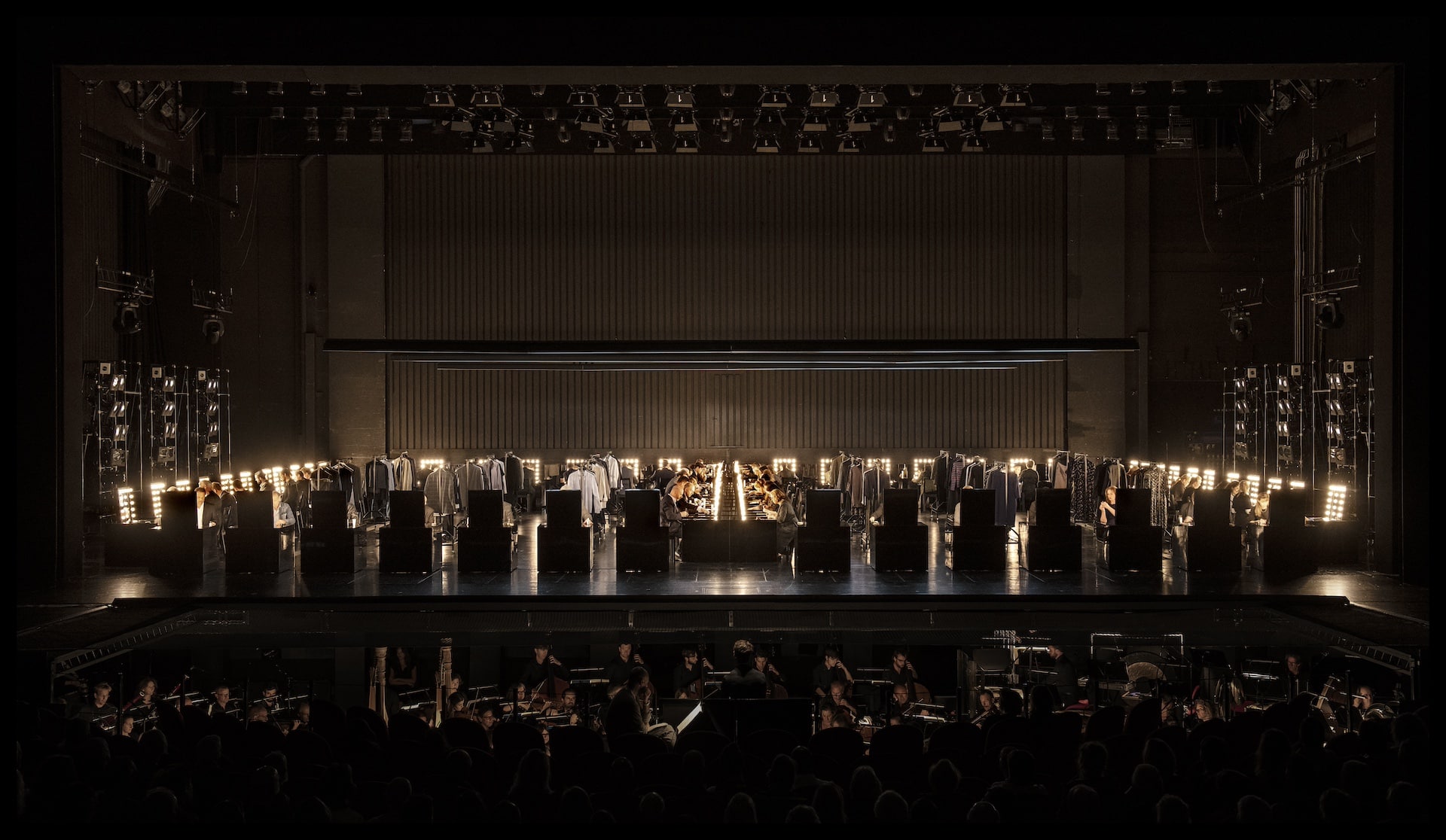 In questa lettura i confini tra personaggi, interpreti e pubblico si assottigliano, creando un’esperienza meta-teatrale che solleva domande profonde sul rapporto tra arte, vita e identità scenica. Carsen si confronta con le due opere anche attraverso un linguaggio dal forte impatto visivo: invece che ancorare le vicende dei personaggi in un’ambientazione di riferimento geografico o cronologico, il suo progetto drammaturgico è un’indagine scenica sul teatro stesso, sulla relazione tra attore e ruolo, e sul confine labile tra finzione e realtà.