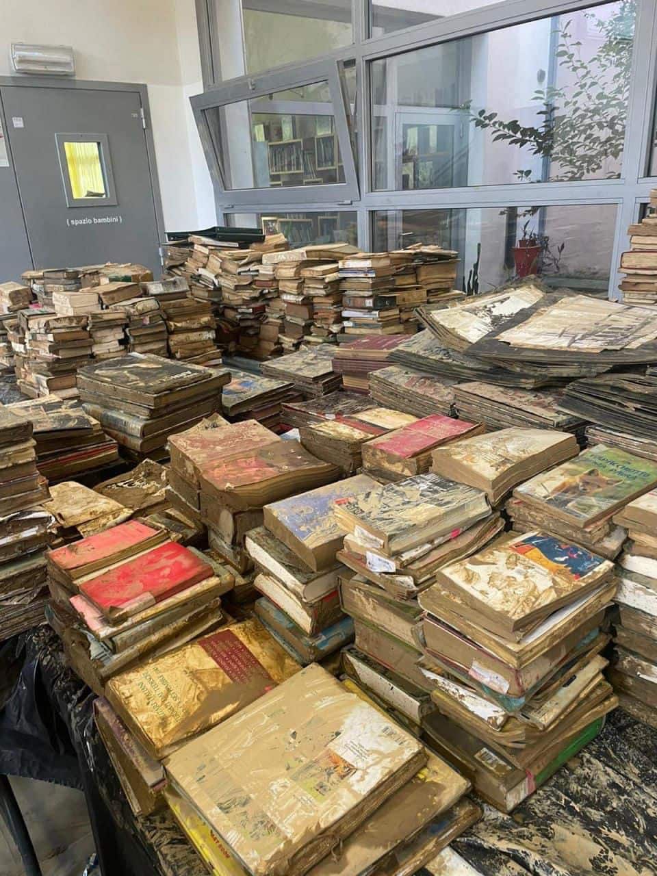 La biblioteca Giovanni Michelucci di Quarrata ha un patrimonio di 50mila volumi. Dopo questa alluvione ne sono andati perduti 20mila, che erano conservati nel magazzino, tra i quali però per fortuna non si trovavano volumi antichi o preziosi.