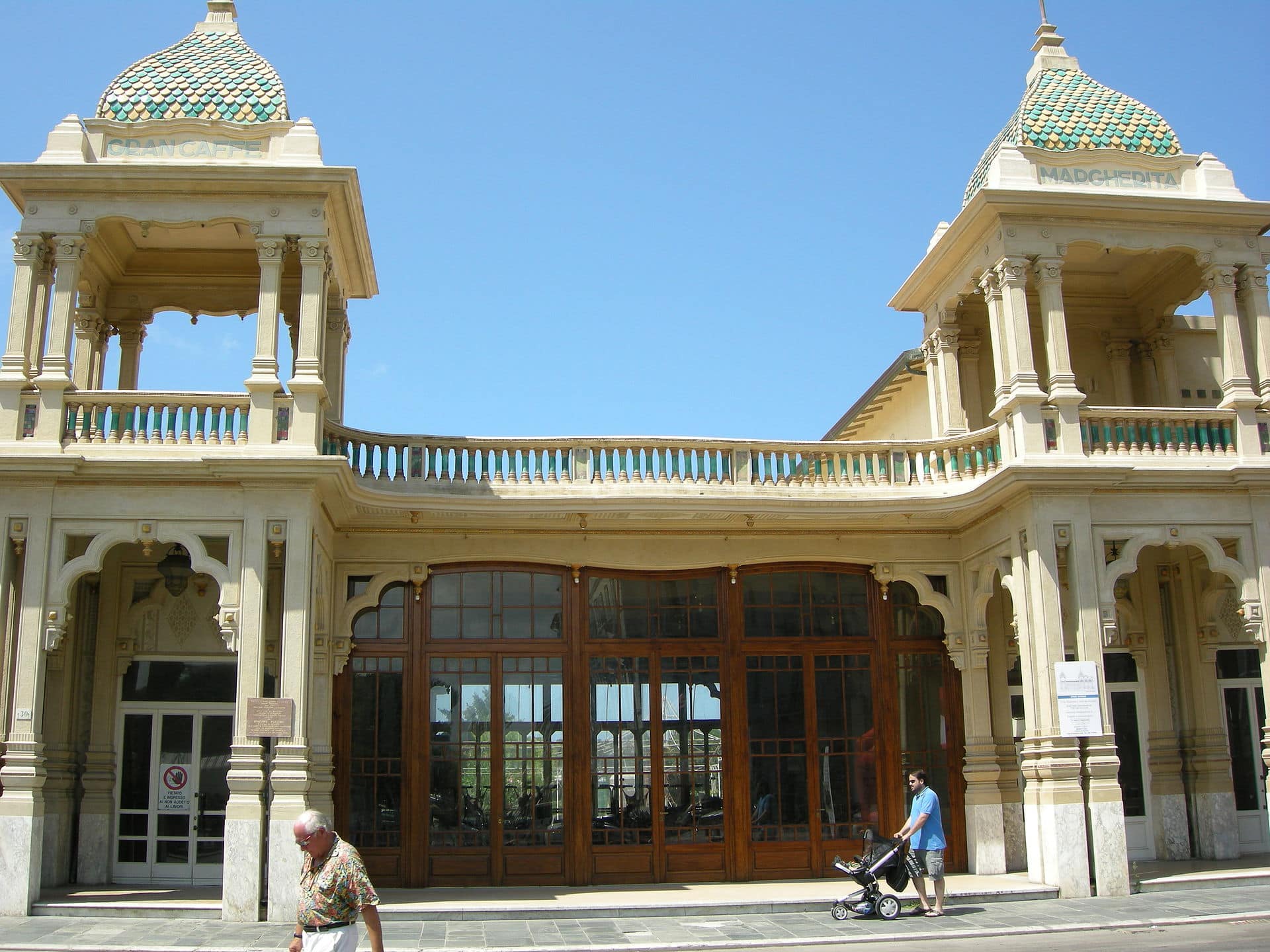 Nella ‘Perla del Tirreno’, come era chiamata la Viareggio che fu, il Margherita con le cupole orientali testimonia la grande passione orientalista diffusa all’epoca, che in musica si ritrova in Madama Butterfly e Turandot di Giacomo Puccini. Al suo interno la sala principale conserva nel soffitto, decorato da Tito Chini così come la loggia aperta sull’esterno, dipinti con cornucopie, putti e uccellini in stile Decò e lucernari in vetro.