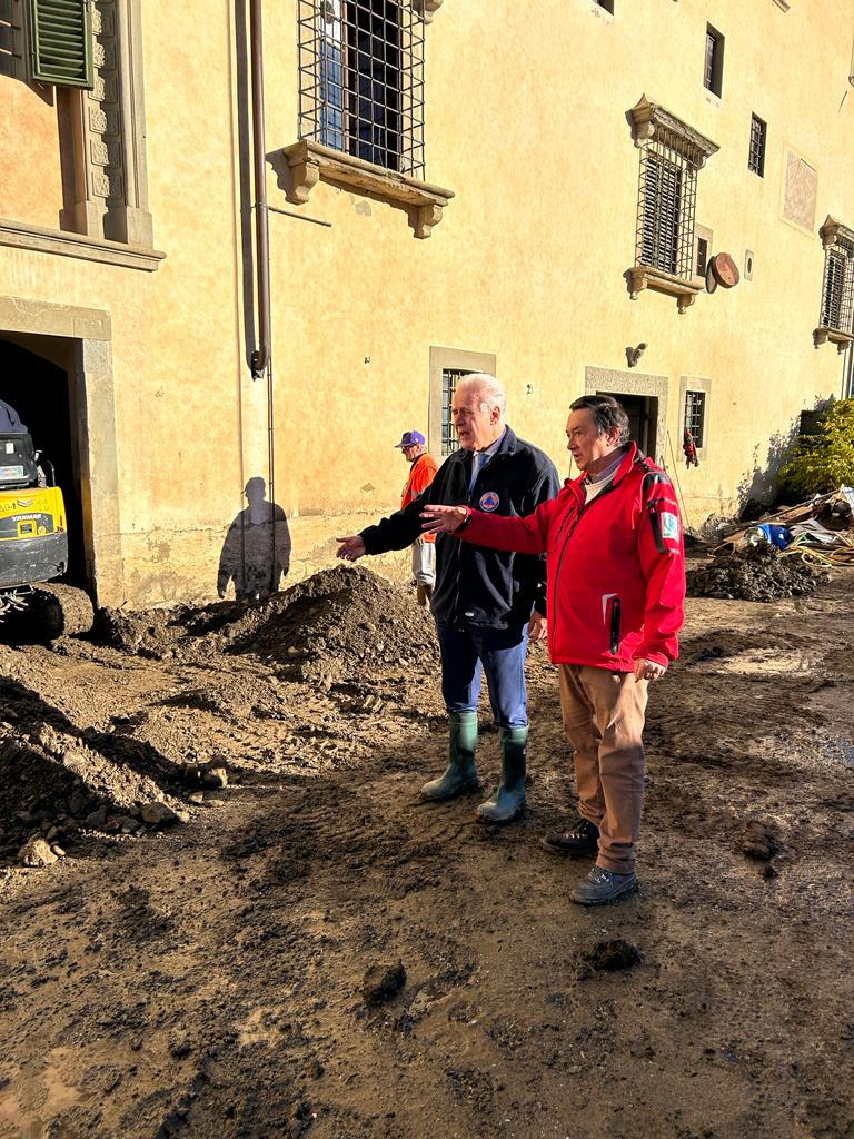 Giani, accompagnato dal sindaco Primo Bosi, ha prima visitato uno dei luoghi simbolo del piccolo centro della Val di Bisenzio, la villa del Mulinaccio, dove oggi tanti volontari, mobilitati dal primo cittadino, si sono dati appuntamento per ripulire e spalare il fango che ancora occupa tanti spazi dello storico edificio. Successivamente Giani si è recato a Vaiano, per verificare la situazione del fosso Trescellere, fiume tombato che nei giorni dell’alluvione è letteralmente esploso invadendo le strade del paese.