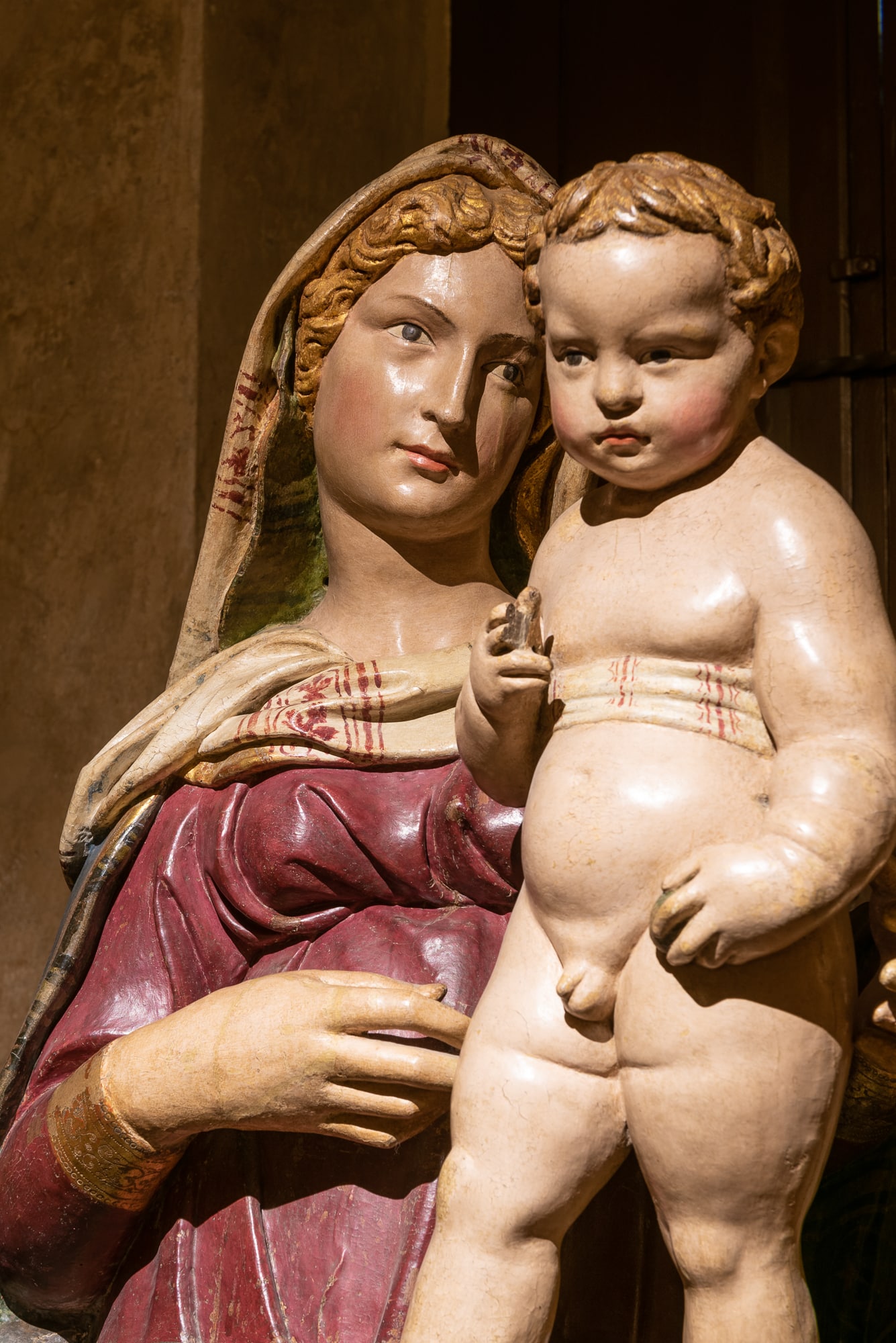 Nel Museo di Palazzo Taglieschi l’attenzione si concentra su tre rappresentazioni della Vergine particolarmente significative: la ieratica Madonna di Giovanni dal Ponte, appena restituita ad Anghiari (grazie ad un accordo fra la Direzione regionale Musei per la Toscana e la Diocesi di Arezzo-Cortona-Sansepolcro, dopo essere rimasta per svariati anni al Museo Medievale e Moderno di Arezzo), l’iconica Madonna con Bambino di Jacopo della Quercia e la commovente, dolcissima Vergine attribuita a Benedetto Buglioni che accarezza con le mani e con lo sguardo il Bambino.