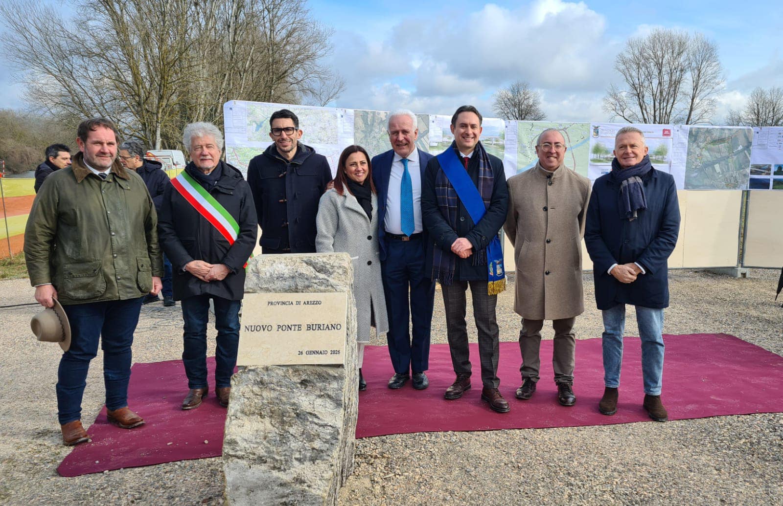 Un gesto simbolico, quello della posa della prima pietra, che segna l’avvio concreto dei lavori per la realizzazione del nuovo ponte e della viabilità alternativa allo storico Ponte Buriano, un’opera attesa da anni dal territorio.