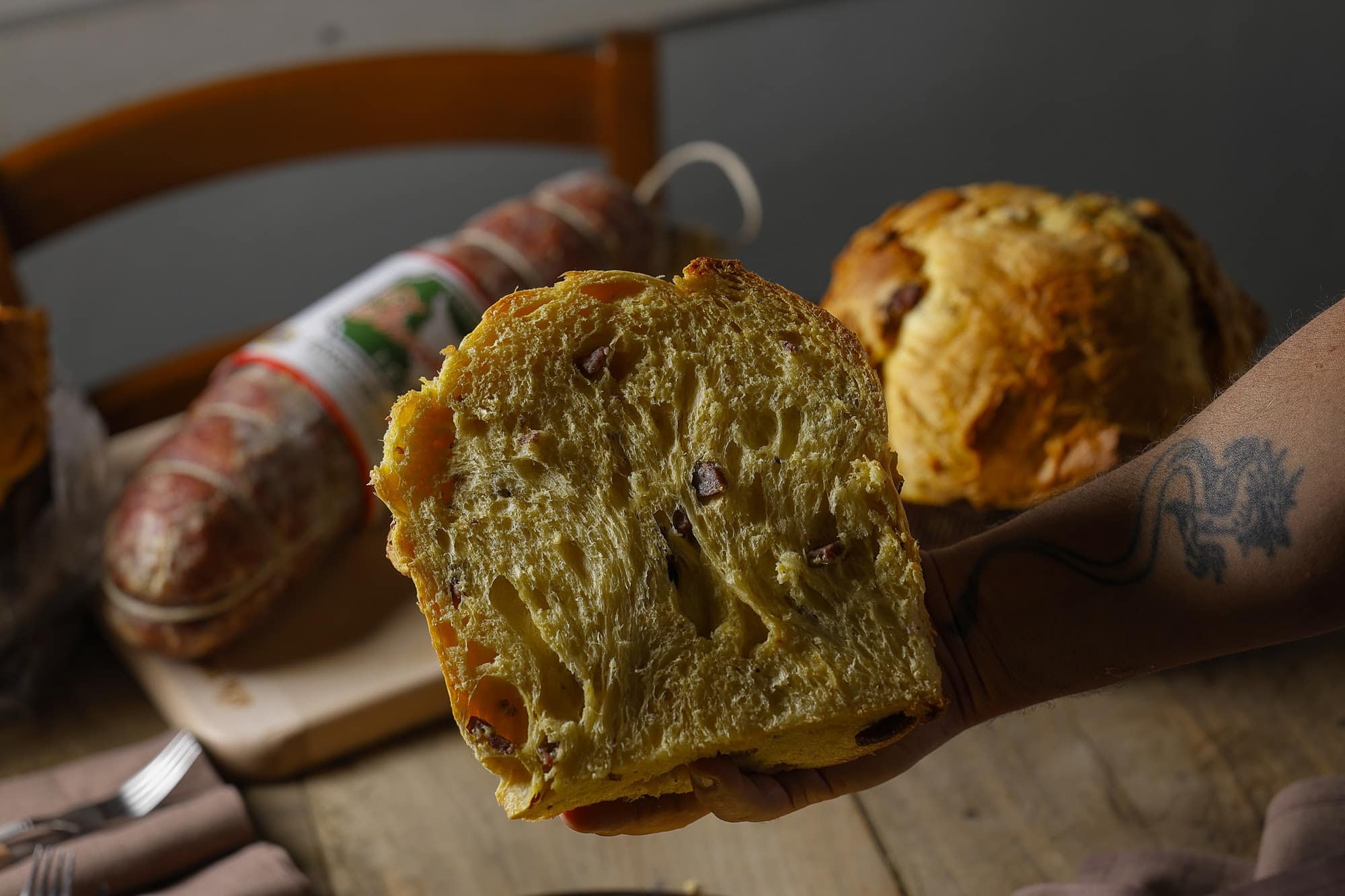 Un grande lievitato per un Natale Made in Tuscany: Tommaso Vatti, pizzaiolo e lievitista de La Pergola di Radicondoli (Tre Spicchi Gambero Rosso) ha lanciato il PanSalato. Una versione salata con Finocchiona IGP: i cubetti del salume toscano sono inseriti in fase d’impasto al posto dei classici canditi delle versioni dolci.