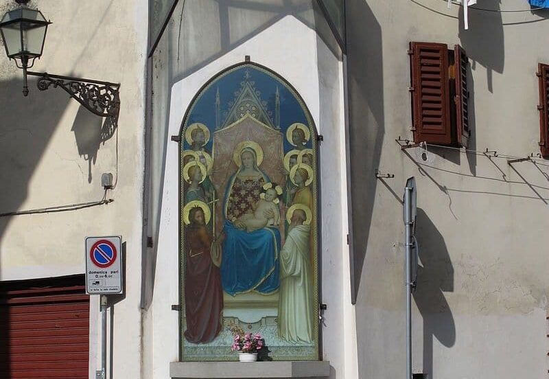 In piazza dell’Unità il medaglione di terracotta smaltata in azzurro e le figure della Madonna col Bambino, attribuito a Andrea della Robbia, per continuare in via Sant’Antonino con due immagini mariane trecentesche, ad opera di pittori fiorentini.