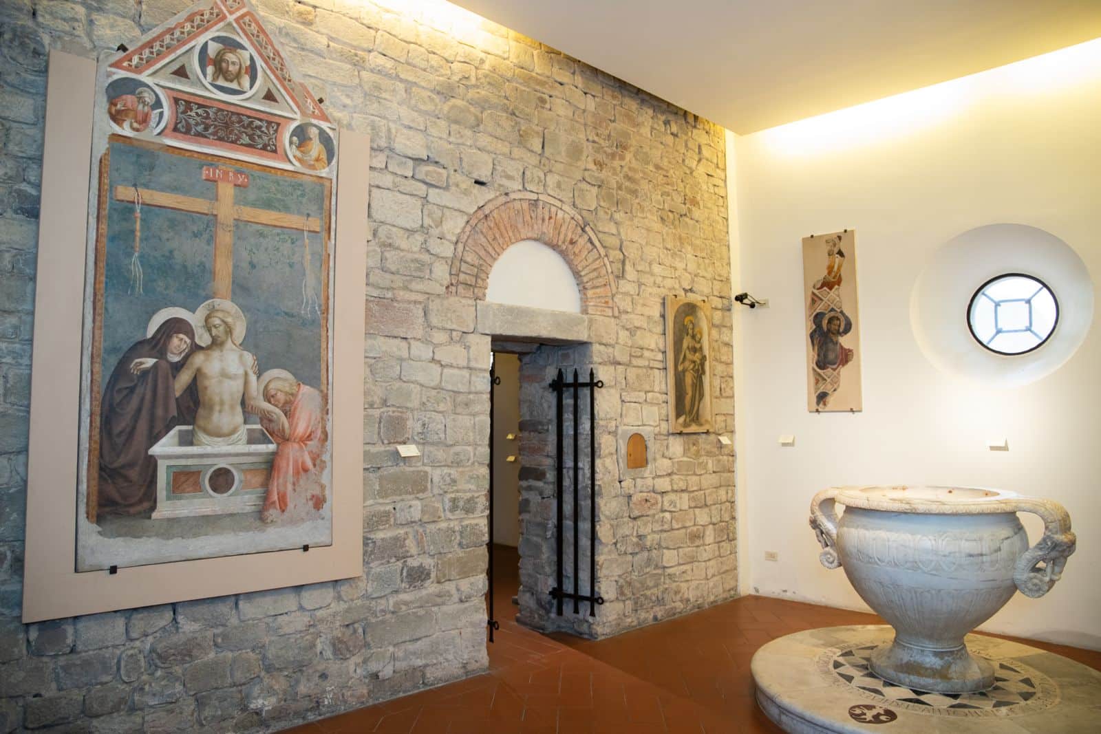 A Empoli Masolino realizzò nel 1424 il ciclo di affreschi con ‘Storie della vera Croce‘ custodito nella chiesa di Santo Stefano degli Agostiniani e il Virdolorum conservato nel Museo della Collegiata.