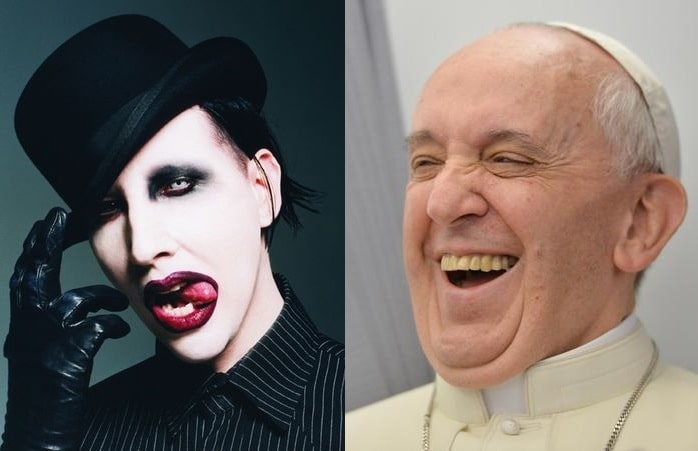 4-Sia Papa Francesco che Marilyn Manson indossano costantemente abiti che potremmo definire “di scena”. E’ infatti impossibile vederli vestiti “in borghese”. Manson ha addirittura dichiarato che l'unico momento in cui si strucca, rimuovendo la cipria bianca, è quando si deve radere il viso, la indossa anche quando dorme e indossa pantaloni di pelle 24 ore al giorno. Inoltre quando "lavorano" adottano entrambi due nomi "d'arte": Jorge Mario Bergoglio è Papa Francesco e Brian Hugh Warner è Marilyn Manson.