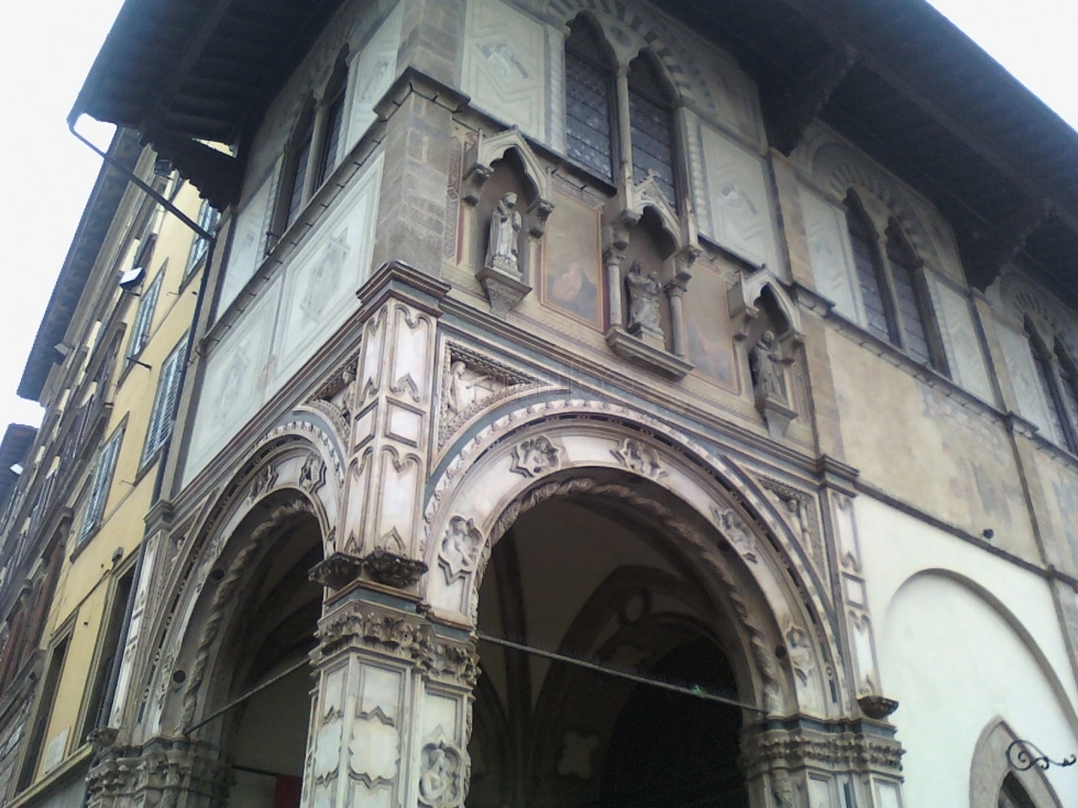 Il palazzetto e la loggia, opera trecentesca di Alberto Arnoldi e Francesco Talenti, furono costruiti per la Compagnia di Santa Maria della Misericordia fra il 1352 e il 1358. Il complesso fu anche sede della Compagnia del Bigallo (istituzione votata all’assistenza degli orfani) a partire dal 1425, quando le due istituzioni furono per un breve periodo unificate. Nel 1489, quando la Misericordia si trasferì altrove, l’edificio divenne sede unica della Compagnia del Bigallo: al pian terreno si trovava l’ oratorio, mentre la parte superiore era destinata a ricovero per i trovatelli.