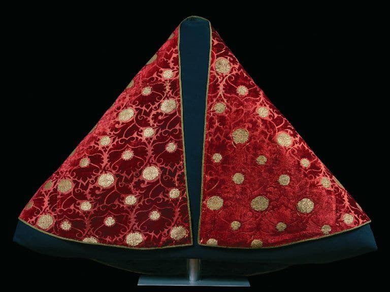 È un prestito eccezionale ad aprire la mostra 'Tessuto e ricchezza a Firenze nel Trecento. Lana, seta, pittura' che si tiene presso la Galleria dell’Accademia di Firenze fino al 18 marzo 2018. Si tratta di un grazioso vestitino in lana prestato dal National Museum di Copenhagen, confezionato sulla metà del XIV secolo per una bambina. La piccola veste proviene da scavi condotti nel 1921 a Herjolfnaes sulla costa orientale della Groenlandia, che portarono al rinvenimento di un cospicuo numero di costumi, databili per la maggior parte al Trecento. L’abitino era probabilmente confezionato per una bambina di tre anni. L’ampio scollo ovale non rende necessari spacchi o allacciatura per indossare il capo. Probabilmente la veste era stata cucita con un tessuto riciclato da un altro abito.