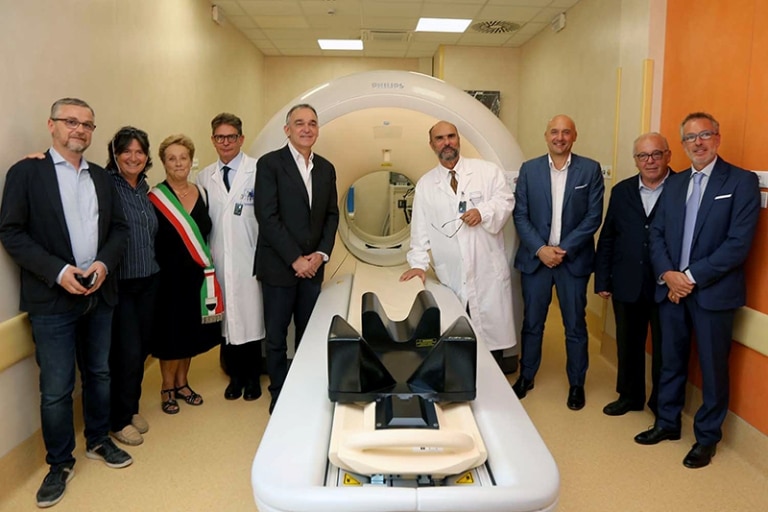 “Quello di oggi è un risultato molto importante per la sanità senese – dichiara Pierluigi Tosi, direttore generale AOU Senese – non solo perché finalmente l’ospedale ha una strumentazione innovativa e di ultima generazione per la diagnosi e follow up dei tumori ma anche perché, nonostante tutte le difficoltà burocratiche che si sono succedute in questi 12 anni di attesa, e che ho vissuto in prima persona nei 5 anni del mio mandato, siamo riusciti a dotarci di questo fondamentale strumento grazie alla tenacia di tutti e all’obiettivo comune di migliorare e potenziare il nostro ospedale. Anche se siamo partiti in ritardo – prosegue Tosi – abbiamo l’ultima generazione tecnologica, con prospettive di utilizzo di radiofarmaci innovativi in campo oncologico”.
