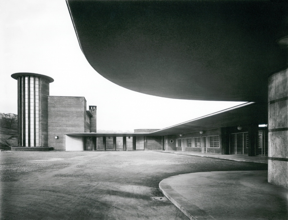 Nella foto - Angiolo Mazzoni - Stazione ferroviaria di Siena: veduta verso il lato Empoli con il fabbricato alloggi e la “torre di luce”, 1933-35. Rovereto, MART Archivio del ‘900, Fondo Mazzoni