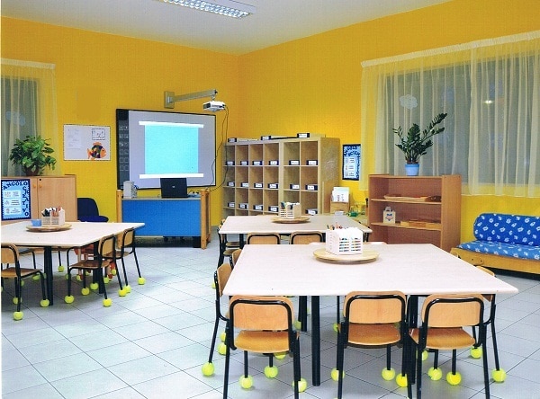 Nelle scuole coinvolte non si usa lo zaino, ma una semplice valigetta per i compiti a casa; lo zaino non è necessario perché gli ambienti sono già organizzati. Nelle classi devono trovarsi schedari, computer, giochi, enciclopedie, libri, materiali per scrivere e ascoltare, disegnare e dipingere, modellare e costruire, registrare e riprodurre, strumenti didattici per le varie discipline di studio, materiali di cancelleria. Inoltre vengono attrezzati gli spazi per i piccoli gruppi, che formano la base del metodo didattico, con tavoli, angoli, pedane, mobili a giorno, archivi, pannellature.