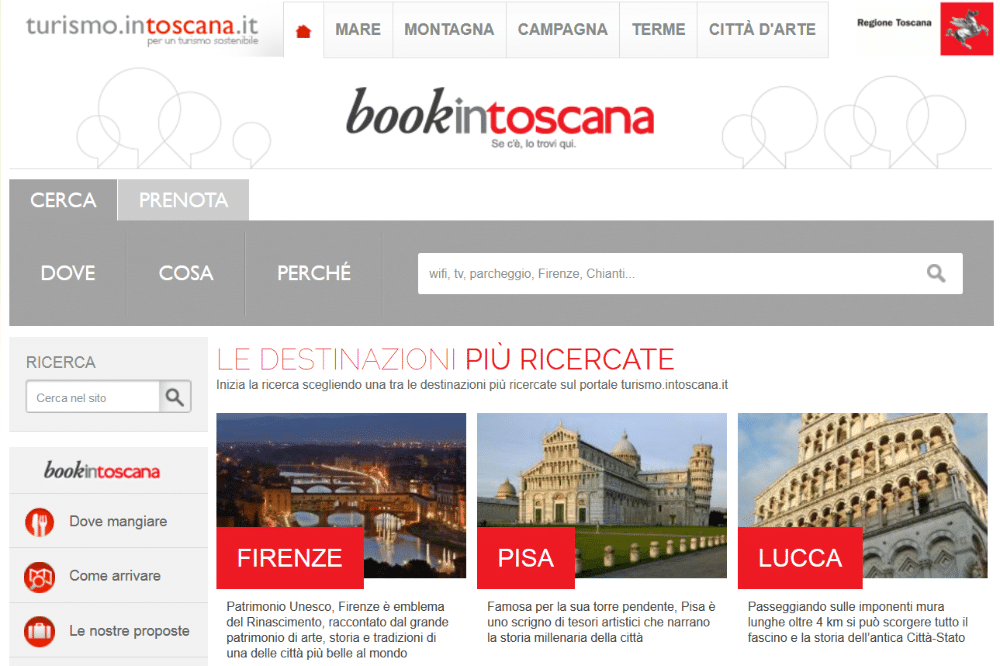Per gli utenti le novità principali sono rappresentate da un patrimonio di informazioni unico, costantemente aggiornato e geolocalizzato; dalla ricerca per tipologia, servizi, area geografica di appartenenza e destinazioni percepite; la ricerca istantanea (instant search); il collegamento con i contenuti editoriali del sito www.turismo.intoscana.it; l’identificazione del punto di interesse e successiva ricerca, con definizione della distanza personalizzata. In pratica l’utente del sito del turismo regionale viene accompagnato per mano, in un click, alla pagina dove può finalizzare la prenotazione.