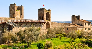 Monteriggioni, più che un borgo una vera perla incastonata nella campagna senese. Situato sulla sommità di una collina, questo gioiello medievale, abitato almeno a partire dall’VIII secolo a.c., compie quest’anno 800 anni.