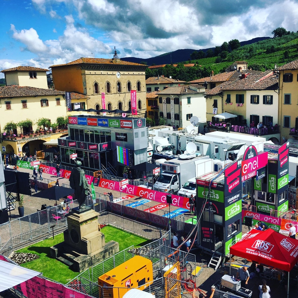 Sabato scorso il piccolo paesino di Greve in Chianti si è addormentato tranquillo per risvegliarsi domenica 15 maggio al centro dell'attenzione nazionale e internazionale. Una foresta di camion, cameramen, motociclisti, tecnici e giornalisti hanno preso possesso della celebre piazza "a baccalà" di Greve per seguire il Giro d'Italia. La cronometro del Chianti o del Gallo Nero si è snodata da Radda a Greve in un percorso di 40 chilometri tra salite e discese immerse nello splendido paesaggio toscano. La pioggia ha reso difficile la pedalata, questo ha avvantaggiato alcuni e svantaggiato altri rendendo la classifica imprevedibile, d'altra parte anche questo è il Giro d'Italia. Alcuni ciclisti sono caduti nella strettoia finale a pochi metri prima dell'arrivo in piazza Matteotti, ma per fortuna nessuno si è fatto male. Alla fine il campione Gianluca Brambilla ha mantenuto la maglia rosa per un solo secondo, mentre la tappa è stata vinta dallo sloveno Primoz Roglic. Greve in Chianti ha retto bene la pressione dell'evento mediatico facendosi bella per i riflettori. Vecchi, giovani e bambini ce l'hanno messa tutta per festeggiare l'importante tappa del Giro indossando i colori del giro in una vera e propria festa in rosa.
