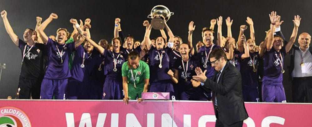 La favola della Fiorentina Women's continua. E le donne viola stanno pian piano conquistando fette di pubblico sempre più importanti. Lo fanno da donne determinate in campo, acute, caparbie, con la testa fissa sull'obiettivo, quello di vincere. Così - ad appena un mese dalla conquista dello scudetto - la squadra guidata dai mister Sauro Fattori e Antonio Cincotta torna a centrare un altro risultato, quello della Coppa Italia, espugnando il Brescia sul campo di Noceto, battendo le avversarie con un goal di Alia Guagni dopo soli cinque minuti di gioco.