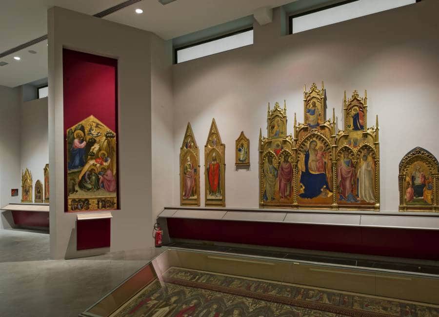 I ritratti di Don Biagio Milanesi e del monaco Baldassarre sono posti ora ai piedi della tavola, nella posizione ipotetica alla base dei pilastri della ricca cornice tabernacolo sommariamente descritta dal Vasari e andata perduta. Il ricongiungimento di questi autentici capisaldi della ritrattistica italiana del Cinquecento all'elemento principale del complesso d'origine è stato attuato tramite lo scambio con la Galleria degli Uffizi, cui sono state 'restituite' le icone russe appartenute ai Lorena, che nel 1780-1782 erano state esposte nel 'Gabinetto dei quadri antichi', sistemate in precedenza alla Galleria dell'Accademia in maniera poco confacente lungo le scale di accesso al primo piano.