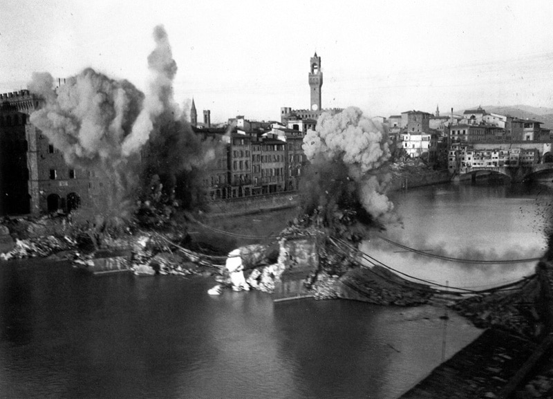 I primi giorni di Agosto del 1944. Firenze vide devastare e distruggere le sue bellezze architettoniche, in particolare ad essere bombardati furono i ponti storici sull'Arno. La distruzione del ponte a Santa Trinita lasciò una profonda ferita, rimarginata solo nel 1958, quando il comitato formatosi spontaneamente tra i cittadini, “com’era e dov’era”, promosse la sua ricostruzione.
