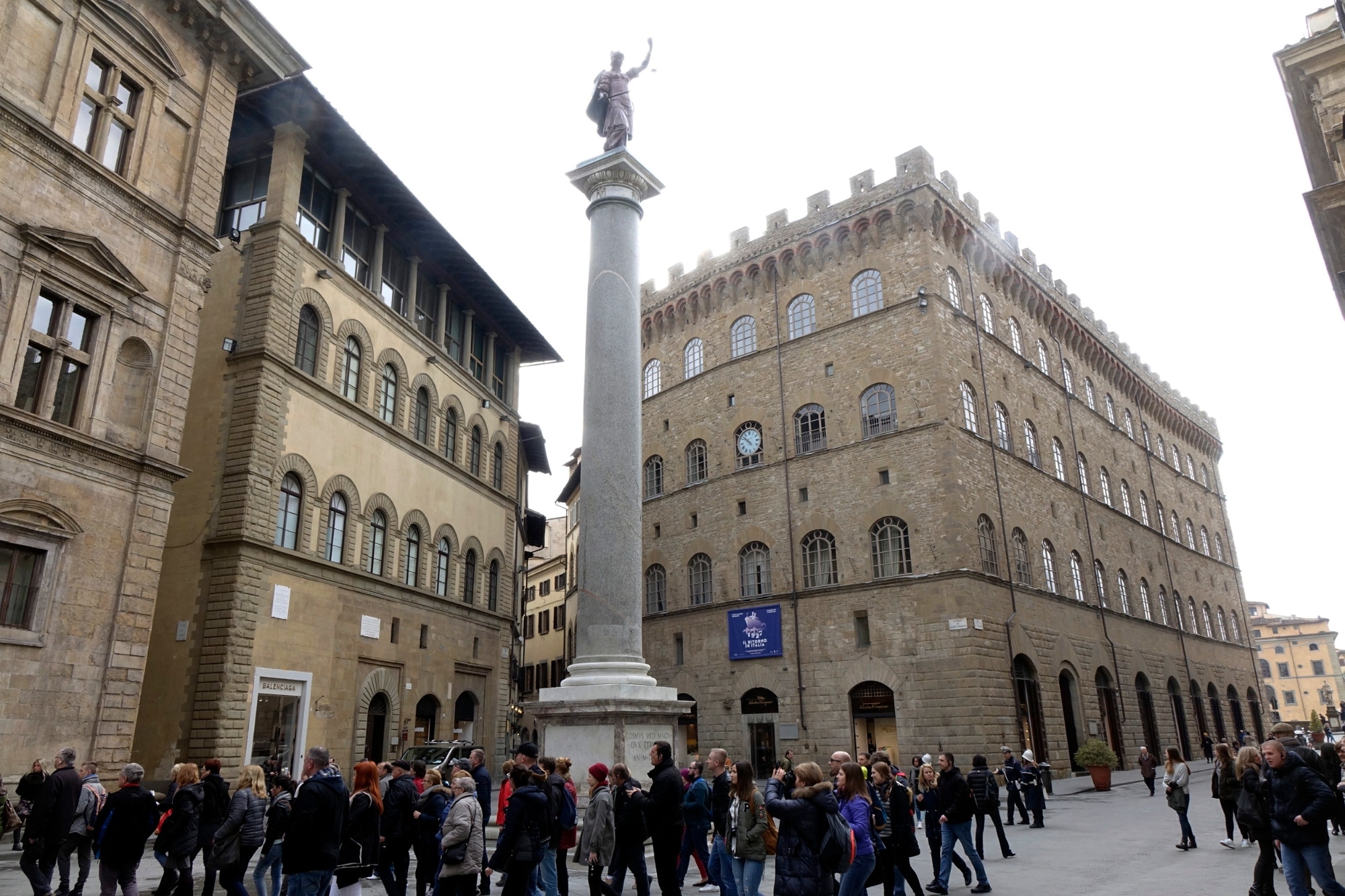 Il monolito collocato in piazza Santa Trinita, davanti alla chiesa omonima, è un dono del 1560 di Papa Pio IV alla casata medicea e proviene dallo spoglio delle Terme di Caracalla. Il colossale fusto, dopo essere stato debitamente imbragato, iniziò il suo viaggio arrivando, attraverso mille peripezie, per via d’acqua sino a Ponte a Signa e poi, per via di terra sino a Firenze, trainato per mezzo di argani piantati nel terreno e azionati da uomini e cavalli che lo facevano avanzare su rulli lignei a loro volta posizionati su travi.