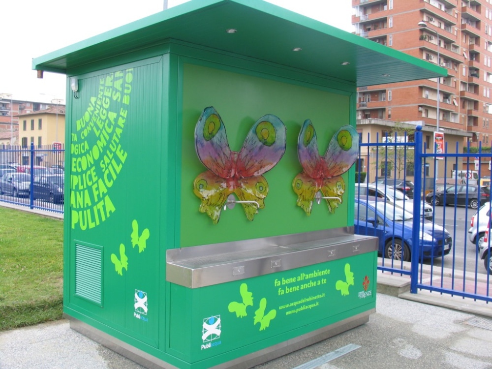 A Firenze, nel nuovo Parco di San Donato a Novoli, a due passi dal polo universitario, da oggi scorre acqua gratuita, refrigerata e frizzante da due coloratissime farfalle disegnate da Sergio Staino e realizzate in resina di ultima generazione nel laboratorio artigiano di Riccardo Marzi. Il nuovo Fontanello, firmato dal famoso disegnatore che per la prima volta ha adattato il suo estro ad un impianto di pubblica utilità, è stato inaugurato stamattina dal sindaco di Firenze Matteo Renzi, da Sergio Staino, dal presidente e amministratore delegato di Publiacqua Erasmo D’Angelis e Alberto Irace. E’ il tredicesimo fontanello di Firenze, sono 39 in tutto il territorio di Publiacqua nelle province di Firenze, Prato, Pistoia e Arezzo (5 a Pistoia, 3 a Tavarnelle Val di Pesa, 3 a Bagno a Ripoli, 2 a Lastra a Signa, Signa, Campi Bisenzio e Impruneta, 1 a Montevarchi, Montemurlo, Calenzano, Quarrata, Agliana, Prato e Sesto Fiorentino).