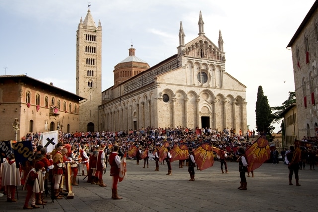 A Massa Marittima sin dalla mattina si terranno tour guidati a partire dalle Fonti dell’Abbondanza, dove ammirare l’affresco dell’albero della fertilità, fino a raggiungere la parte alta dove si trova un magnifico complesso formato dal Cassero, l'Arco Senese e la Torre del Candeliere, mentre nel pomeriggio si terrà l’esibizione di sbandieratori e musici. A Casole d’Elsa sfileranno gli sbandieratori e i tamburini delle contrade, mentre in piazza si potranno ammirare i mercatini di prodotti tradizionali e artigianato locale e il Museo civico proporrà una caccia al tesoro per i più piccoli e un tour sulle orme del pittore Augusto Bastianini.