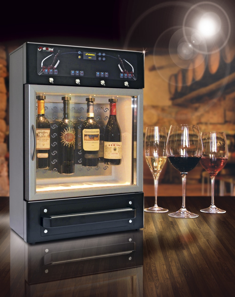 E allora ecco il dispenser per enoteche, ristoranti e bar, mini cellule frigo per tenere aperte le bottiglie e spillare vino alla bisogna. La partcolarità di questi dispenser – da quattro posti ciascuno – è di garantire per 30 giorni la conservazione delle qualità del vino nella bottiglia aperta con una temperatura selezionabile tra i 2 e i 25 gradi.