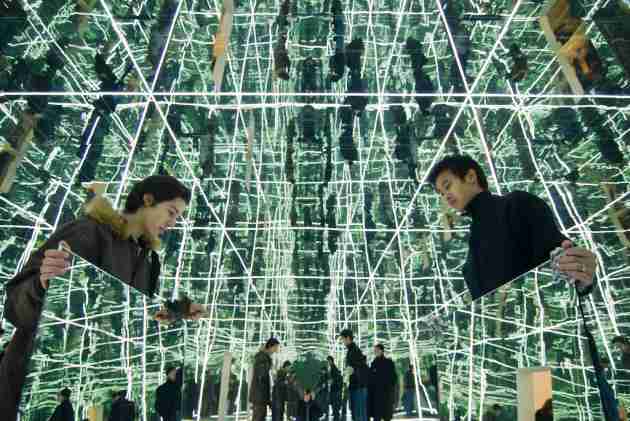 Grande Cubo specchiante - Luogo di riflessione e meditazione è una struttura cubica ricoperta esternamente di opache lastre in acciaio e all’interno rivestita completamente di specchi. L’opera darà vita a un percorso nel quale il pubblico potrà vivere l’esperienza di un luogo senza limiti, che si estende all’infinito.