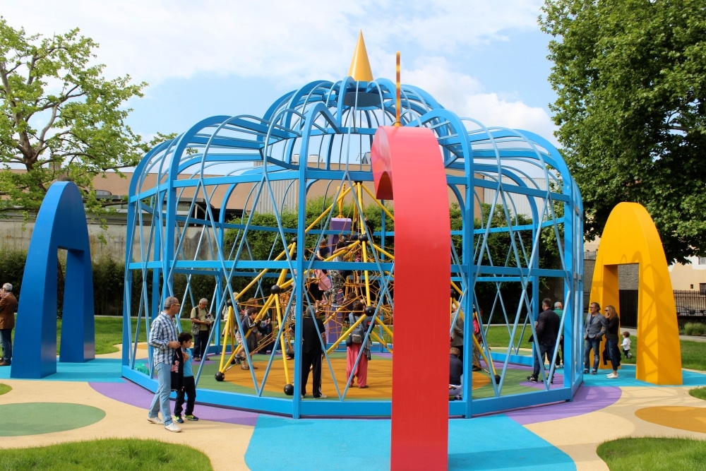 Altalene, scivoli, tappeti volanti, pagode e zuggurat coloratissimi, vanno a comporre “l’opera unica” che ha trovato così il suo completamento grazie ai sorrisi, agli schiamazzi e alla gioia dei bambini che d’ora in avanti verranno a giocare in questo splendido spazio di 8 mila metri quadrati dedicato all’arte e all’infanzia.