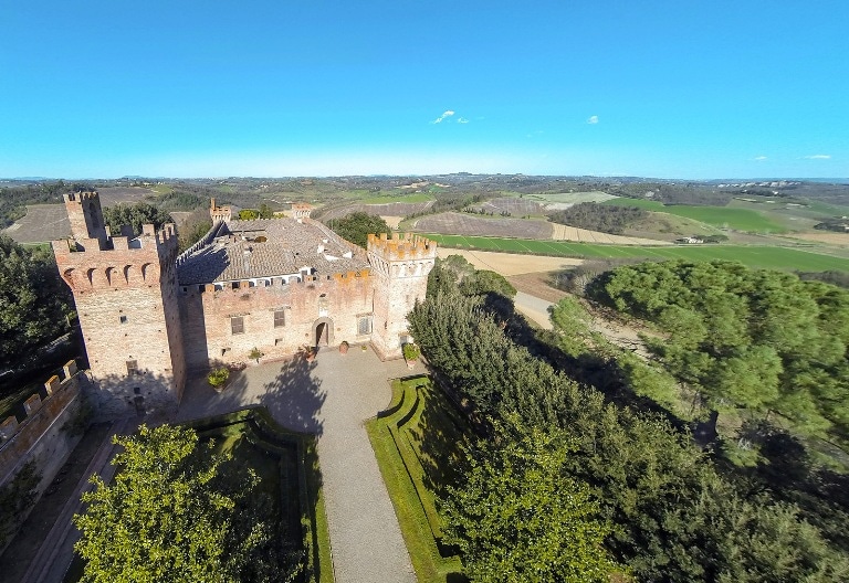 In vendita da Lionard Luxury Real Estate, il castello, nei pressi di Firenze, si presenta con quattro torri angolari e le mura merlate percorribili per tutto il perimetro. In ottime condizioni di manutenzione, il castello fa parte di una tenuta che comprende anche 25 case coloniche, un borgo con una villa settecentesca e una cappella nel bosco per un totale di circa 35 mila mq di interni e 1.200 ettari di terreni agricoli - vigneti e oliveti - e boschivi.