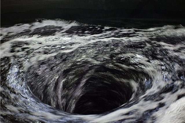 Anish Kapoor torna a esporre in Italia con "Descension" un progetto appositamente concepito per la platea del cinema teatro della Galleria. Descension presenta una serie di nuove sculture in alabastro che invitano lo spettatore a riflettere sul concetto di infinito e sui misteri del tempo sepolti all'interno della forma. Grazie alle qualità traslucide del materiale l'artista rafforza il passaggio dalla pittura alla scultura e dalla pittura alla dissoluzione aerea fino a diventare luce. Descension mette in crisi, destabilizza la nostra percezione della terra come elemento solido, conferma l'interesse di Kapoor per i non-oggetti e per le forme auto-generate. Nel suo stato di flusso e movimento Descension mette lo spettatore di fronte a una forza perpetua, a una spinta verso il basso e verso un interno totalmente inconoscibile.