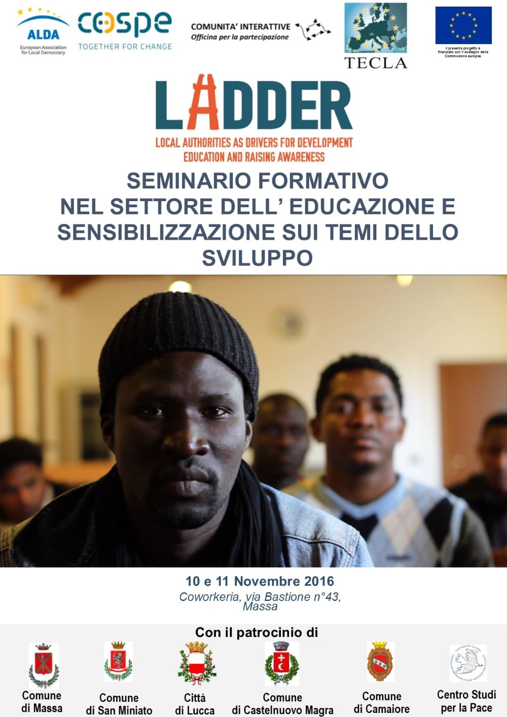 L'associazione "Comunità Interattive - Officina per la partecipazione" in collaborazione con l’Associazione Tecla nell’ambito del progetto europeo LADDER, con il patrocinio dei Comuni di Camaiore, Massa, Lucca, San Miniato, Castelnuovo Magra, e della ONG COSPE e del CISP dell'Università di Pisa organizza un seminario informativo-formativo gratuito per progetti di educazione e sensibilizzazione sui temi dello sviluppo nell’ambito delle migrazioni e della lotta alle povertà.