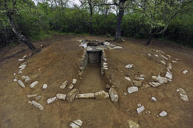 Contiguo all’area archeologica di Rocca di Frassinello, nei terreni di Poggio all’Olivo, troviamo un altro grande tumulo della necropoli di San Germano che presenta una struttura più complessa rispetto agli altri trovando paralleli nei grandi tumuli principeschi di Vetulonia. Depredata già in epoca antica, la tomba ha comunque restituito molti reperti che testimoniano l’utilizzo prolungato di questo sepolcro dalla fine del VII al III secolo a.C. e testimonianze della passione degli etruschi per il vino.