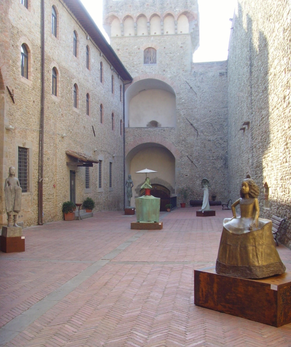 E così se Dicomano proporrà al museo archeologico una raccolta di sculture di paesaggio dal titolo “Paesaggi qui e oltre” e la Casa di Benvenuto Cellini, a Vicchio, una serie di “bozzetti” con titolo “Maria, Maria!” oltre a due opere sistemate nei giardini attigui, San Piero a Sieve dedicherà alla mostra, dal titolo “Sacro”, la piazza prospiciente Villa Adami con l’opera meditativa “Il silenzio della coppia” e la piazzetta del Comune con l’opera “Lassù più in alto”. A Vaglia sarà di scena la composizione “Uomo e i gatti”: il sogno trasfigurato dell’opera “Uomo che dorme con il gatto” immerso in una vera e propria ‘gattara’, a memoria della bellezza e della semplicità del quotidiano, declinato nell’arte. A Scarperia invece, nella corte interna del Palazzo dei Vicari, “Promenade”con un’elegante sfilata di figure femminili in bronzo: “Mannequin”, Maria come “L’enfanta Margherita”, “Anna col parasole”, “Non è Takaco”, “Modella con le mani nei capelli” ed un’altra elegante scultura inedita, “La modella di A. Brückner”, opera di grande formato, realizzata appositamente per l’occasione. A Borgo San Lorenzo, nella loggetta dell’ex Palazzo del Podestà (sede della biblioteca comunale) e in piazza Garibaldi in mostra la “Piccola Annunciazione” con la scultura “Maria in posa sul panchetto” insieme ad altre opere di carattere religioso, mentre a Barberino di Mugello, se nella piazza principale è già in bella mostra la scultura “Seba da Puzzocane, amante dei poeti”, ad inizio settembre nelle sale del Palazzo Pretorio si potrà ammirare “Stanze scritte”: un lavoro a quattro mani che vede coinvolto il poeta Ivo Guasti.