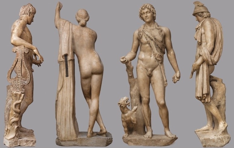 Dopo un oltre un anno di restauro, tornano visibili le monumentali statue di età romana raffiguranti Pothos, Hermes, Apollo e Bacco che dalla fine del XVIII secolo, ornavano le quattro nicchie laterali del prospetto meridionale del Salone dei Cinquecento. Secondo il gusto dell’epoca, erano già state sapientemente completate delle parti mancanti con frammenti antichi di diversa provenienza e integrazioni moderne in stile, nonché rilavorate e lucidate, prevalentemente sul lato anteriore, l’unico visibile.