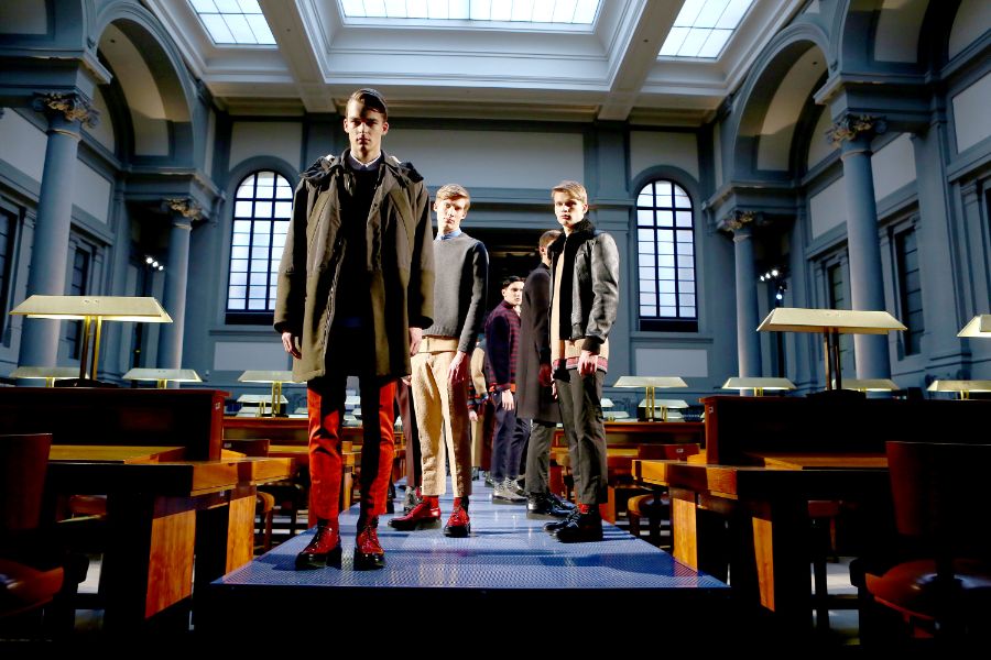 Hanno sfilato tra le scrivanie e gli scaffali pieni di libri della Biblioteca Nazionale di Firenze i modelli di Alessandro Dell’Acqua, che ha presentato il suo brand N.21 ieri in occasione di Pitti Uomo, in una suggestiva passerella ospitata nella sala più grande della Nazionale, tra decine di video che proiettano i dettagli degli outfits.