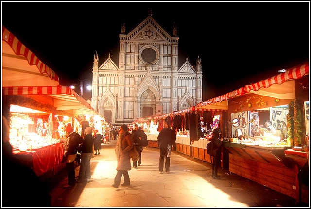 Weihnachtsmarkt, mercato tedesco, a Firenze in piazza Santa Croce.