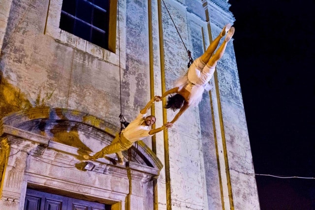 In aria saranno anche gli acrobati di Mattatoio Sospeso che in Piazza Cisterna (dalle 19:30) sfideranno la legge di gravità con lo spettacolo di danza verticale Les amants du ciel. Tra voli iperbolici e utopie non poteva mancare la potenza immaginifica della poesia questa volta portata dai versi di Giusi Quarenghi, Azzurra D'Agostino e Alessandro Riccioni; autori che scrivono parole adatte all'orecchio sensibile dei bambini, ma che questa volta accompagneranno il pubblico, composto da genitori e “adulti” nella consueta passeggiata di mezzanotte guidata dallo storico dell'arte Raffaello Razzi.