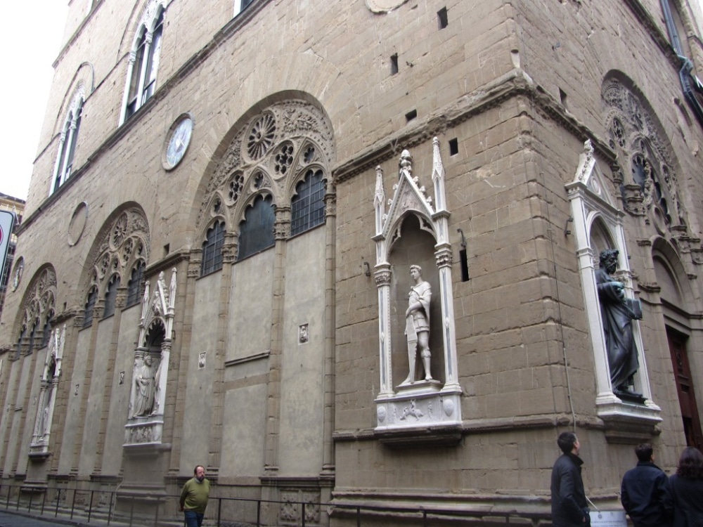 In particolare vi si possono ammirare opere di Lorenzo Ghiberti (San Matteo, Santo Stefano, San Giovanni Battista), Nanni di Banco (Sant’Eligio, San Filippo, Quattro Santi coronati), Donatello (San Marco), Baccio da Montelupo (San Giovanni Evangelista), Andrea del Verrocchio (Incredulità di San Tommaso), Giambologna (San Luca), Filippo Brunelleschi e Donatello (San Pietro) nonché il San Jacopo attribuito a Niccolò di Pietro Lamberti, la Madonna della rosa attribuita a Piero di Giovanni Tedesco.