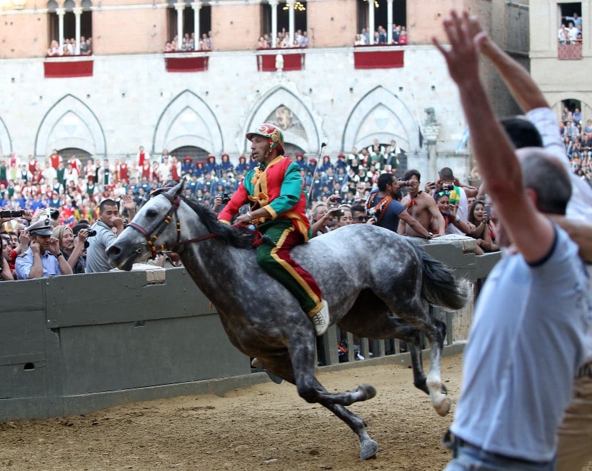 Fino alla manovra da kamikaze, entrando dall'interno al secondo Casato, che spiazza tutti. In una corsa senza cadute, l'allungo vincente porta la contrada del Drago alla vittoria finale. Esulta la piazza.