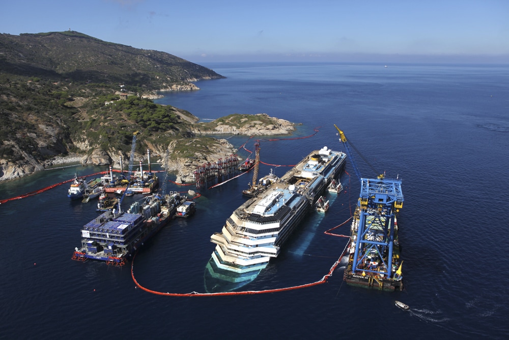 Costa Crociere, assistita nell'occasione dal prof. Ardizzone, impegnata a garantire la continuità di presenza e attività fino all'assegnazione dei lavori di ripristino, ha illustrato al presidente e al sindaco le linee di intervento previste. Si tratta di un piano articolato in quattro fasi: prima di tutto la rimozione dei materiali depositati nei fondali; poi il recupero dei 1396 sacchi di cemento, cui seguirà la rimozione delle piattaforme metalliche e infine a completamento dell'intervento con la pulizia dai sedimenti depositati sul fondale. I lavori saranno affidati al più presto e si concluderanno nel giro di circa un anno e mezzo.