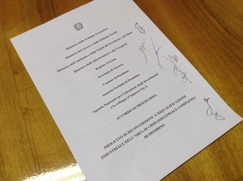 Una nuova vita per il polo industriale di Piombino. Con la firma sull'accordo stipulato al Ministero dello Sviluppo Economico, viene dato il via alla parte operativa, ovvero al Progetto di riconversione e riqualificazione industriale dell'area di Piombino (Prri), dopo il riconoscimento di “area di crisi complessa”.